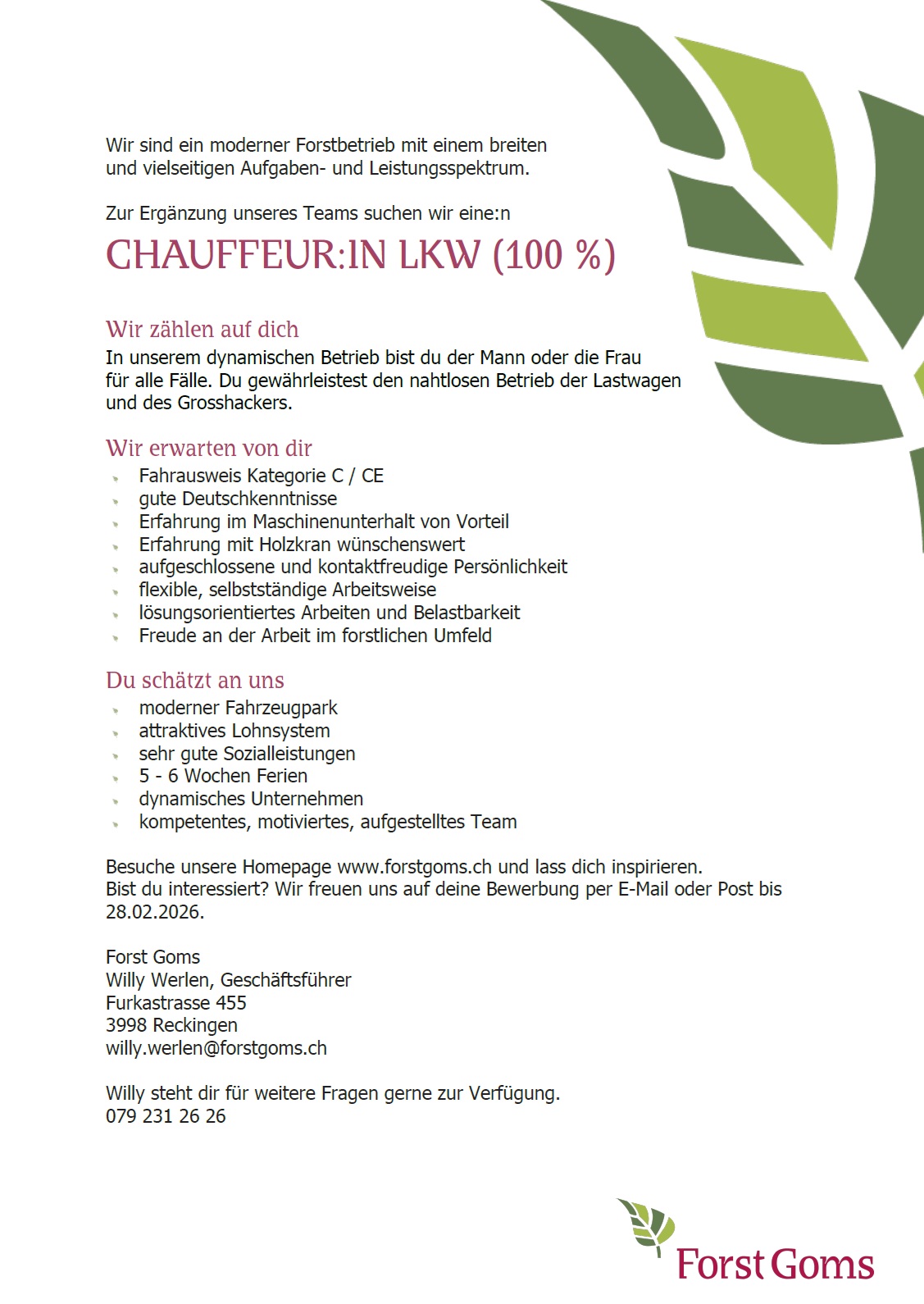 05.02.2026 Forst Goms - Ausschreibung Chauffeur