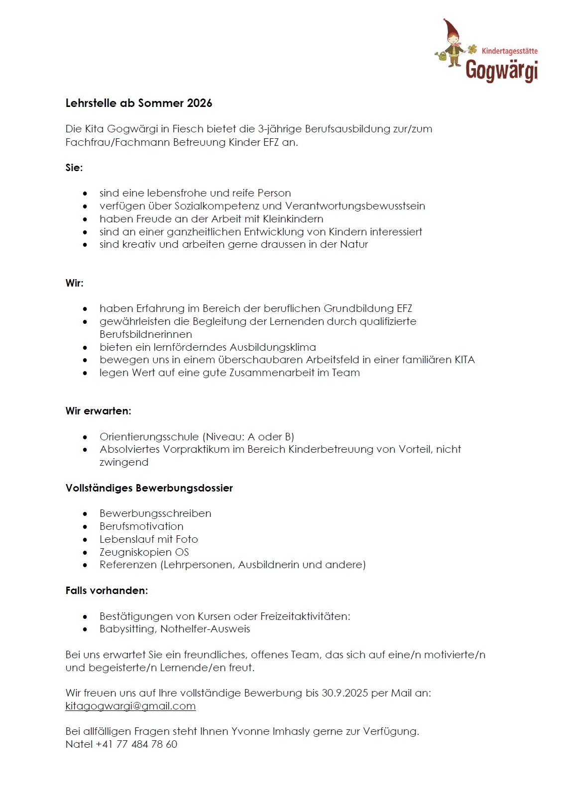 05.09.2025 Kita Gogwärgi - Lehrstelle