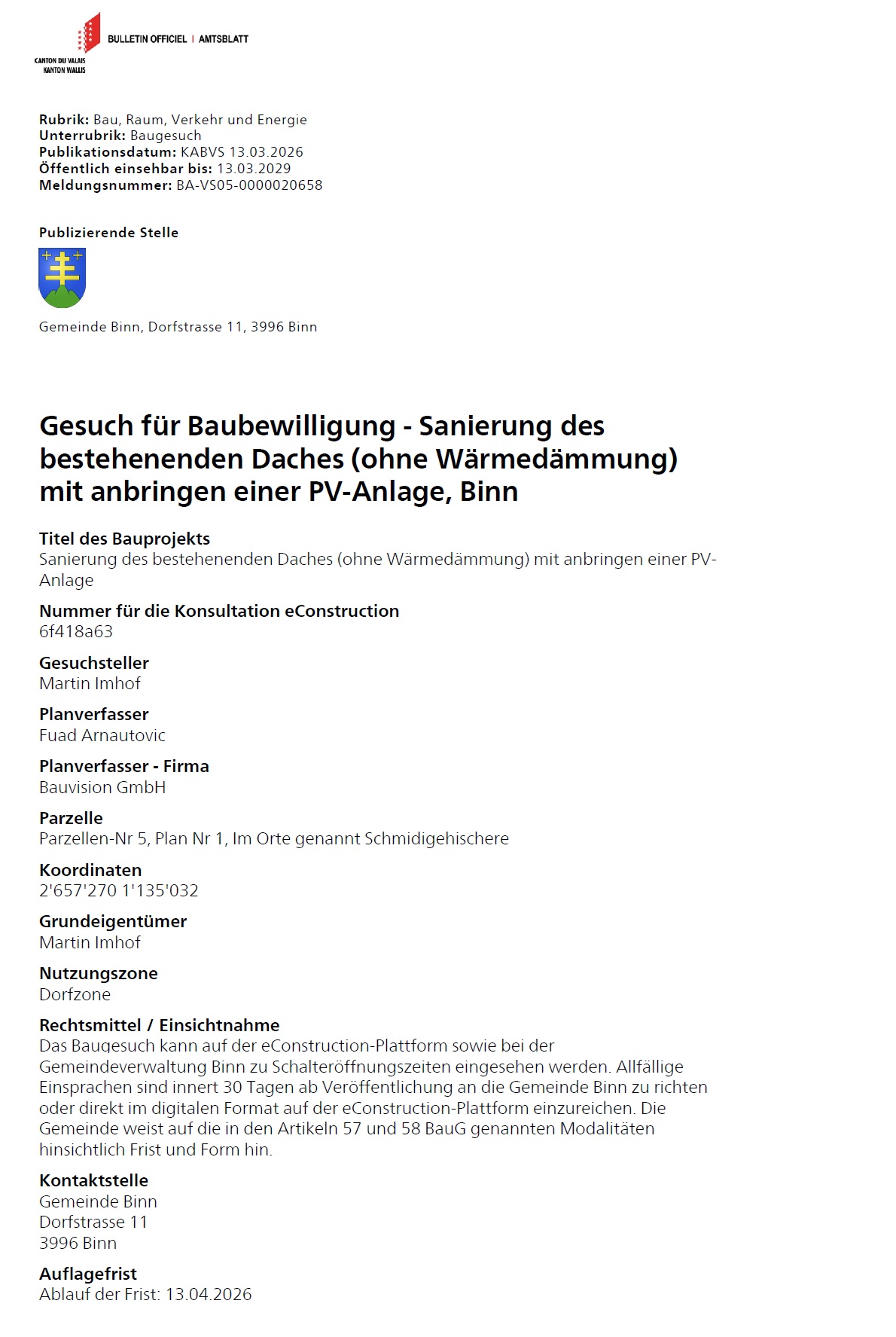 13.03.2026 Baugesuch Martin Imhof