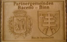 Baceno, ist die Nachbargemeinde von Binn und liegt im Piemont, im Norden von Italien, 655 m.ü.M. und hat eine Fläche von 6872 ha. Zurzeit zählt Baceno 952 Einwohner. Die Beziehungen mit Baceno begangen bereits im Jahr 1964 als die Leiter am Geisspfadpass eingebaut wurde und im folgenden Jahr die Einweihung stattfand. Seither finden alle zwei Jahre Freundschaftstreffen statt. Ebenfalls seit Anfang der 70er Jahre findet jährlich am 1. Samstag August die Messe auf dem Albrunpass, 2'400 m.ü.M. (auf der Grenze Schweiz / Italien) statt, an der der Verstorbenen der beiden Talschaften gedacht wird.