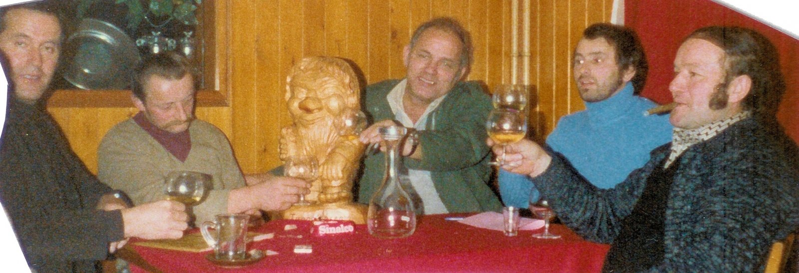 In den Anfangsjahren des 1964 erbauten Binntal-Tunnels war das Befahren desselben vor allem im Winter eine abenteuerliche Angelegenheit. Keine Beleuchtung, schlechte Fahrbahn, herunterhängende grosse Eiszapfen, Schlaglöcher . . . all das erinnerte sehr an eine Geisterfahrt. Aus dieser Situation heraus kamen ein paar Binner auf die Idee, einer neu gegründeten Fastnachtsgruppe den Namen Tunnelbozen zu geben. Erste Kontakte hierzu wurde im Jahr 1975 geschlossen. Nach 3-jährigem Stillschweigen in der Tunnelkathedrale von Binn wurden am 11. Januar 1978 um 20:30 h, natürlich nach einem reichlichen Mahl, schliesslich die Tunnelbozen gegründet. Zum Oberbozen wurde Strahler-Toni gewählt, zum Unnerbozen Mäni Bieri, Säckelmeister Schmid Häischi und Griffelfigger Imhof Kari. Z’Schmitter Päuli wurde zum Chellenschwinger ernannt und Xili Walker zum Glatzeschmücker. Die Tunnelbozen waren nun gegründet. Kurz darauf stellte man fest, dass es mit sechs Mitgliedern schlecht geht, da es bei Abstimmungen und Wahlen vielfach zu einem Gleichstand kam. Daher musste ein weiterer Bozen gefunden werden. Man machte sich auf die Suche in den Restaurants und fand nach langem Suchen den siebten Bozen in der Person von Schnitzer Adolf Imhof.